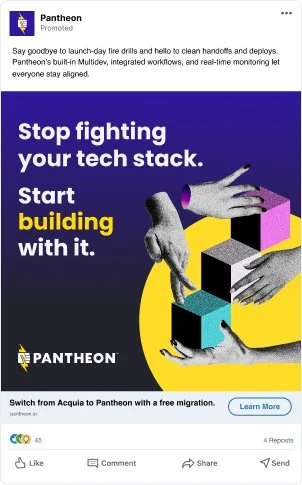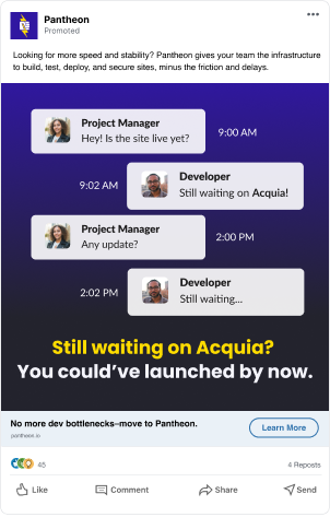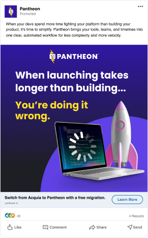 The Execution: We developed a series of pointed digital ads that cut through the noise. The result is playful but hard-hitting campaign that put Pantheon in the spotlight (and kept their competitor on their toes).